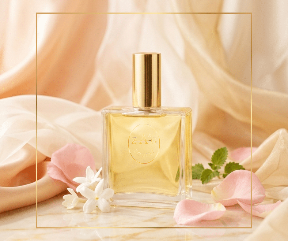 Ароматната композиция на ZAG 32 CO e с нотки на цитруси, цвят от портокал, роза и жасмин.